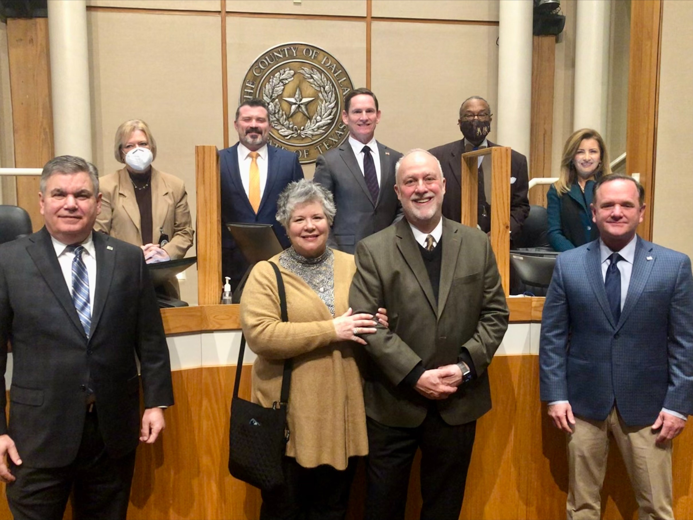 It was a privilege to recognize the City of Richardson’s City Manager Dan Johnson for his 45 years of service in municipal government in Commissioner's Court on March 8. Dan came to the City of Richardson 25 years ago to serve as Deputy City Manager before becoming City Manager in June of 2012. Prior to his tenure with the City of Richardson, Dan served the City of Carrollton as Deputy City Manager for eight years and City Manager for three years. Dan officially retired on February 28, 2022. On hand to help celebrate this momentous occasion were his wife Tina, new City of Richardson City Manager Don Magner and City of Richardson Mayor Paul Voelker. |