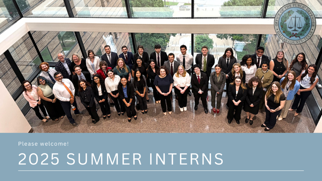 In 1996, starting with students from local universities, the Dallas County Public Defender’s Office launched its Internship Program. Over the years, the program has expanded, training high school, college, and law students from across the U.S. and even internationally. The office is an approved site for students to earn school credit or fulfill public service requirements, offering internships year-round, including for newly licensed attorneys.
